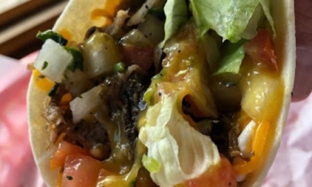Your protein choice with salsa, cheddar cheese, sour cream and lettuce.