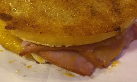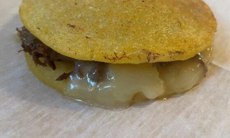 cornmeal patties with queso blanco and your choice of protein